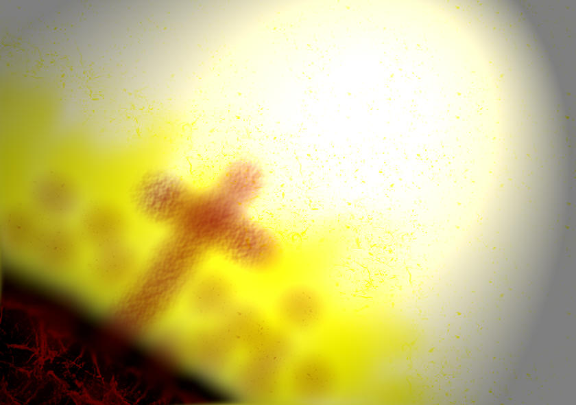 15. Station Der Herr ist auferstanden und mit ihm zeigt sich neues Leben. Der gelbe, helle Strudel, aus dem der Hauptteil dieses Bildes besteht ist Symbol für dieses Leben. Der Weg den wir Menschen auf dieser Erde gehen müssen ist dargestellt durch den grünen und dadurch auch hoffnungsvollen Pfad, der in diesen Strudel hineinführt. Gleichzeitig bildet er ein Dreieck, was Symbol ist für Kraft. Kraft, die uns während unseres Lebenswegs begleitet und uns vor Problemen schützt, abgebildet durch die kleinen grauen Punkte auf der grünen Fläche. Ebenso gibt es noch zwei andere Dinge auf dem Bild, die eine Rolle spielen. Gott im Himmel, seine Kraft, die über uns als helles Licht strahlt und Jesus auf Erden, im unteren Bereich der grünen Fläche auch als helles Licht. Ihre Lichter werden uns auf unserem Lebensweg immer scheinen.