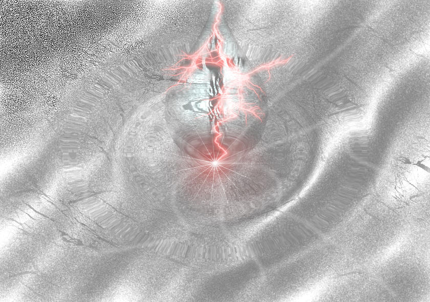 13. Station Wenn man genau schaut, erkennt man oben rechts einen Teil des vorigen Bildes. Man sieht auch die Zeichen in Form von den kleinen Punkten aus dieser Richtung kommen. Doch von diesem Ereignis bekommen die Menschen zurzeit auf der Erde nichts mit. Sie nehmen mit viel Verbundenheit von Trauer und Leid, auch hier dargestellt durch Rot und Schwarz Jesus vom Kreuz. Dieser ist hier der große schwarze Kreis. Jesus ist tot und die Menschen fühlen sich allein. Das zeigt der kleine graue Punkt unten links, der auch rote Farbe enthält. Er steht leidend völlig allein im Dunkeln und weis nicht mehr weiter. Die Zeichen von Jesus Tod haben ihn noch nicht erreicht.