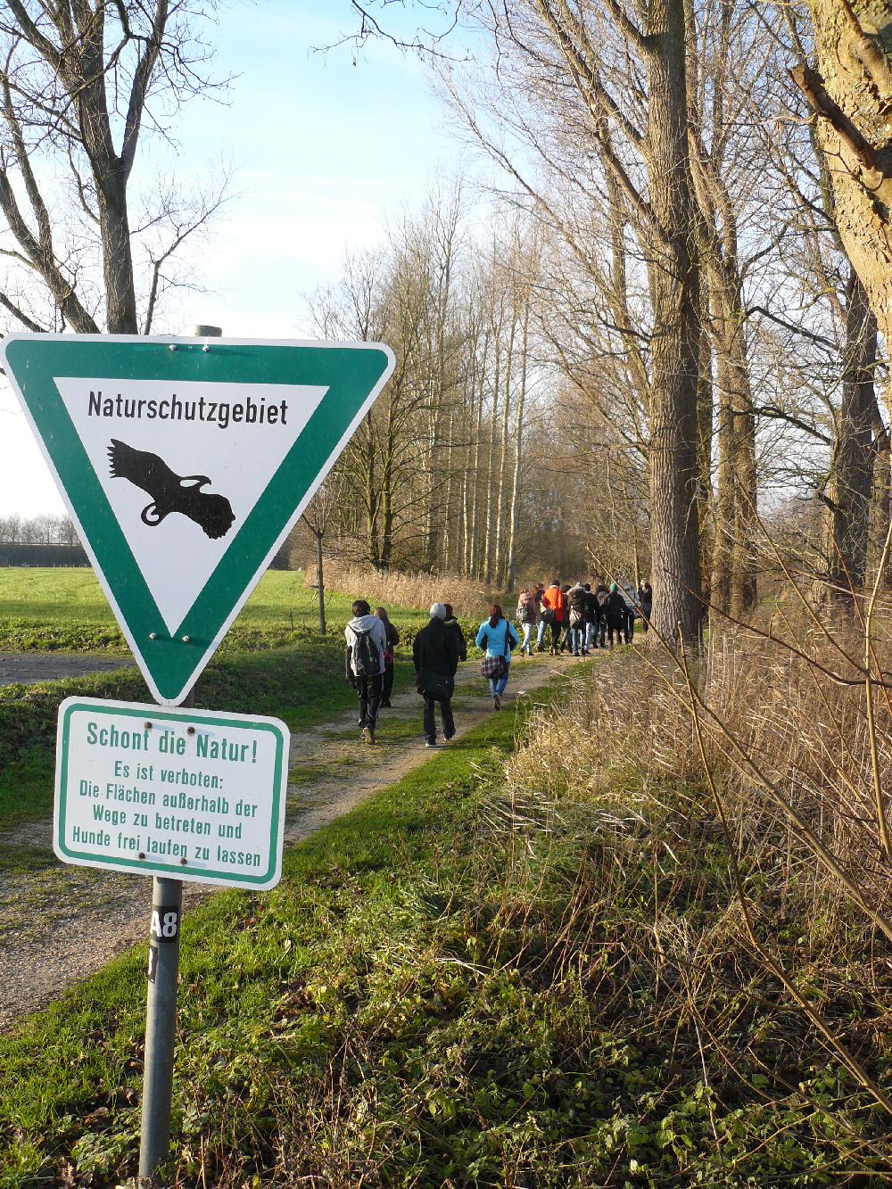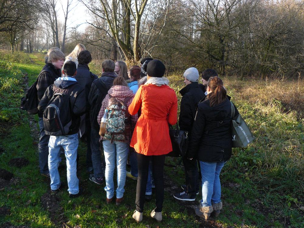 Besuch des Erdkundegrundkurses EF im Naturschutzgebiet der Düffel. Vier Schüler informierten sich und führten anschließend ihre Mitschüler durch das Kranenburger Bruch.