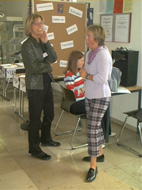 Fremdsprachen in Schule und Weiterbildung Anlässlich der 1. Klever Projektbörse am 22. September 2001 in den Räumen der Volkshochschule Kleve präsentierte sich der Fachbereich Fremdsprachen der VHS Kleve (Fachbereichsleiterin: Renate Schmitz) gemeinsam mit Hans-Joachim Michels (Mitarbeiter des LSW Soest). Mehrsprachigkeit für alle! Unter dieser Themenstellung wurden mehrere Bereiche zusammengeführt bzw. sollte deren Ineinandergreifen den interessierten Besucherrinnen und Besuchern transparent gemacht werden: 1. Runder Sprachentisch 2. Europäische Sprachenzertifikate 3. Sprachenportfolio 4. Europäisches Jahr der Sprachen 2001 1. Runder Sprachentisch Auf Initiative des verstorbenen Bürgermeisters Herrn Thelosen fand am 28.5.1998 die konstituierende Sitzung eines Runden Sprachentisches im Euregio-Haus in Kleve statt. Die Einrichtung Runder Sprachentische in NRW war eines der Aktionsfelder innerhalb des Modellversuchs "Wege zur Mehrsprachigkeiet, mit dessen Hilfe auf lokaler Ebene Repräsentanten von Wirtschaft, Schule und aller übrigen Institutionen, die sich als Ausbilder oder Nutzer mit Fremdsprachen befassen, zusammengeführt wurden. Ziele waren: - Verdeutlichung der Bedeutung des Fremdsprachenlernens für Jugendliche, - Ermittlung der lokal wichtigen Fremdsprachen sowie Überlegungen, wie dem Bedarf entsprochen werden kann, - Erörterung der von sog. Abnehmern geforderten Kompetenzen und Bereitstellung von Förderangeboten (z.B. Betriebspraktika). Ergebnis der Sitzung war die Institutionalisierung eines Runden Sprachentisches (auf der Projektbörse verdeutlicht durch einen runden Stehtisch mit entsprechender Beschriftung) mit der Empfehlung, innerhalb einer Arbeitsgemeinschaft den Themenbereich "Bestandsaufnahme des schulischen und außerschulischen Fremdsprachenangebotes in Kleve zu ermitteln. In den darauffolgenden Monaten wurde eine repräsentative Umfrage an allen Schulformen einschließlich VHS - in Kleve, Kranenburg, Bedburg-Hau und Emmerich mit dem Ziel durchgeführt, einen Überblick darüber zu bekommen - wie viele Schülerinnen und Schüler welche Fremdsprache lernen, - welche Unterrichtsmaterialien eingesetzt werden, - ob Kooperationen zwischen Schulen bestehen, - welche Zusatzangebot Arbeitsgemeinschaften u.ä. die Schulen anbieten. Mit freundlicher Unterstützung der Volksbank Kleve erschien das Ergebnis der Untersuchung in gedruckter Form in einer Broschüre im Mai 2000. Die Projektbörse war noch einmal Anlass, diese Broschüre vorzustellen. Einige wenige Exemplare sind über Frau Schmitz (Tel. 02821/7231-22) oder Herrn Michels (Tel. 02821/26327) zu beziehen. Die Broschüre wird im nächsten Jahr aktualisiert und auf die Homepage der Stadt Kleve gesetzt. 2. Europäische Sprachenzertifikate In einem langen Entwicklungsprozess sind die in den siebziger Jahren konzipierten "VHS Sprachenzertifikate revidiert worden. Sie werden seit 1999 als "Europäische Sprachenzertifikat&' in 12 europäischen Ländern angeboten. Es handelt sich um modernste Fremdsprachenzertifikate auf dem Sprachenmarkt; sie öffnen den Volkshochschulen neue Chancen eines qualitätsorientierten Sprachenangebots und einer professionellen Profilierung. Die Projektbörse bot die Gelegenheit, die Modalitäten und Inhalte der Prüfungen vorzustellen. Interessenten konnten dies praktisch nachvollziehen, indem sie einen Ausschnitt aus dem Modelltest einer von ihnen gewählten Sprache (Englisch, Deutsch als Fremdsprache, Französisch, Spanisch, Italienisch, Niederländisch) bearbeiteten: mittels Kopfhörern und den entsprechenden schriftlichen Unterlagen absolvierten sie einen Ausschnitt aus dem Testteil "Hörverstehen'. Bei einer abschließenden Verlosung winkte dem Gewinner ein Gutschein für eine VHS-Veranstaltung. Diese "Hörprobe wurde während der gesamten Dauer der Börse rege in Anspruch genommen. Es wurden aber nicht nur VHS-Materialien zum Europäischen Sprachenzertifikat ausgelegt, sondern auch Broschüren des Deutschen Industrie- und Handelstages: "Arbeitsplatz Europa: Sprachkompetenz wird messbar". Es handelt sich um den Gemeinsamen Europäischen Referenzrahmen (CEF - Common European Frainework), um die Zusammenarbeit von Bildungseinrichtungen auf europäischer Ebene zu fördern, insbesondere aber um Sprachenkompetenz in einer europaweit gültigen Skala messbar zu machen. Für die internationale Vergleichbarkeit ist das CEF von Nutzen, da z.B. Prüfungen und Zertifikatssysteme dessen Kategorien als Grundlage für die Beschreibung fremdsprachlicher Kompetenz heranziehen können. Unterschieden werden die vier klassischen Fertigkeitsbereiche Hören, Lesen, Sprechen, Schreiben. Im Rahmen dieser vier Bereiche definiert das CEF ein Raster von sprachlichen Handlungen, das sich über sechs international vergleichbare Niveaustufen erstreckt. Soll ein Mitarbeiter beispielsweise im Außendienst eingesetzt werden, muss er fremdsprachige Mitteilungen gut verstehen und in der Lage sein, sich mündlich dazu zu äußern (Hören, Sprechen = Niveau C 1). Er braucht aber nicht unbedingt die Regeln der Geschäftskorrespondenz in der jeweiligen Fremdsprache zu kennen (Schreiben = Niveau A 2). 3. Sprachenportfolio Das Europäische Portfolio der Sprachen ist ein Instrument, mit dem die Fähigkeiten, sich in einem mehrsprachigen Europa zu verständigen, differenziert und sachgerecht so dokumentiert werden, dass sie auch in anderen Ländern verstanden und akzeptiert werden. Unter Portfolio versteht man die strukturierte Sammlung von Dokumenten unterschiedlichster Art. Es ist eine Dokumentation von persönlichen Arbeiten, die Lernwege und Lernerfolge belegen. Sie wird von dem Lernenden selbst zusammengestellt, ergänzt und aktualisiert. Das Europäische Portfolio der Sprachen ist auf Beschluss des Europarates in den europäischen Ländern erprobt und entwickelt worden und wird zur Zeit in vielen Ländern in den Schulen eingeführt. Das Sprachenportfolio besteht aus drei Teilen: - Der Sprachenpass: In ihm werden alle S