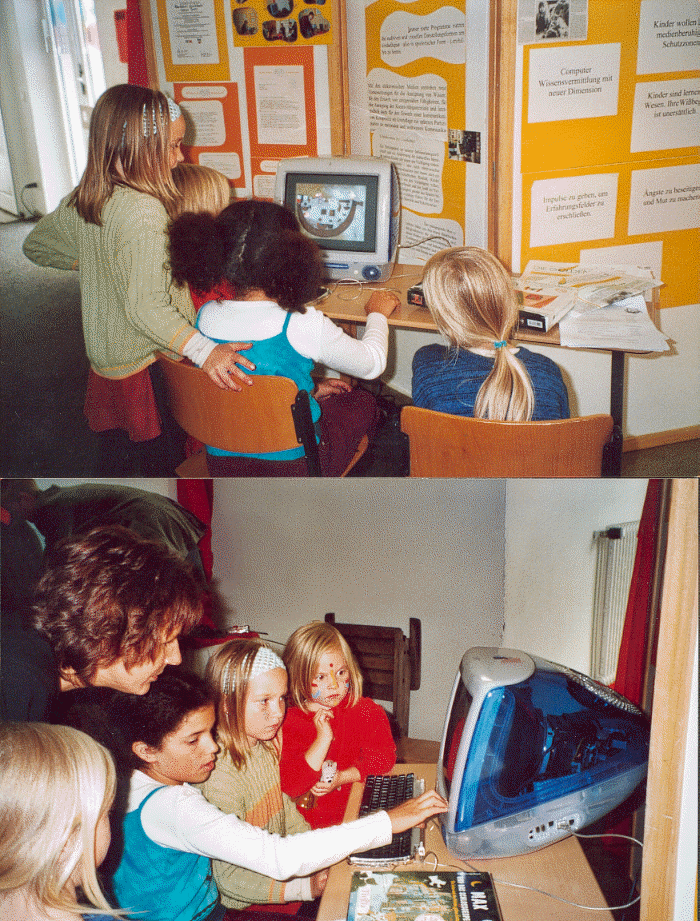 Projektbeschreibung: Ergebnispräsentation der Projektarbeit des Innovationsprojektes: Multimedia im Kinderzimmer. Kinder und Computer: gefördert vom Ministerium für Schule und Weiterbildung, Wissenschaft und Forschung des Landes NRW. Projektpartner: Gustav-Stresemann-Institut e.V. (GSi) Bonn und SIN-Studio im Netz e.V. München. Kinder spielen gerne - auch mit den multimedialen Spiel- und Lernwelten, wie der Computer sie bietet. Neu an dieser medialen Nutzung sind die interaktiven Möglichkeiten, die eine selbstgesteuerten Umgang auch für die Kinder ermöglichen. Damit werden die Spiel- und Lernprogramme auch für den Kindergarten interessant. Der Einsatz des "Spielplatz Computer" zur frühzeitigen Förderung uund Ausformung der Medienkompetenz rückt immer ins pädagogische Blickfeld. Das Projekt bat die Möglichkeit, die damit verbundene pädagogische Herausforderung anzugehen und praxisnahe Erekenntnisse zu sammeln. Die Besucher der 1. Klever-Projektbörse hatten die Möglichkeit, die Ergebnispräsentation des durchgeführten Projektes in visualisierter Form kennen zu lernen und selbst am Computer die eingesetzte Edutainmet Spiele einzusehen bzw. auszuprobieren. Ansprechpartner: Sabine Becker Integratives Montessori-Kinderhaus Reichswalde Eichenwinkel 28 47533 Kleve Tel.: 0 28 21 / 4 88 37 |