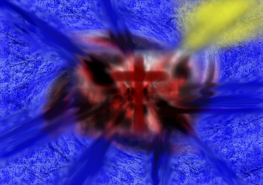 3. Station Wenn man auf das Bild schaut merkt man, wie man darin hineingezogen wird. Dieses Hineinziehen stellt den ersten Fall unter dem Kreuz dar, was ebenfalls mit der roten Farbe des Leides zu erkennen ist. Um dieses Kreuz erkennt man nur die Farben Rot und Schwarz, die Farben des Leides und des Todes, denn diese beiden Gefühle spielen bei diesem ersten Fall Jesus die größte Rolle.