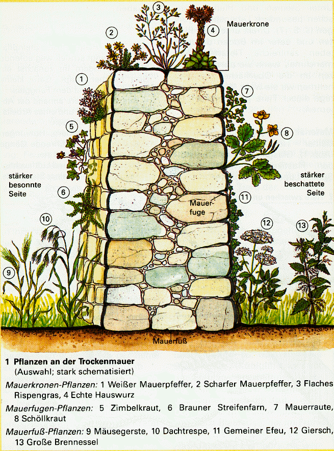 Aufbau einer typischen Trockenmauer: aus: bsv Biologie 2 GN, S. 15 Die Schüler erhielten fachkundige Unterstützung durch den NABU Krefeld von Frau Heckmanns.